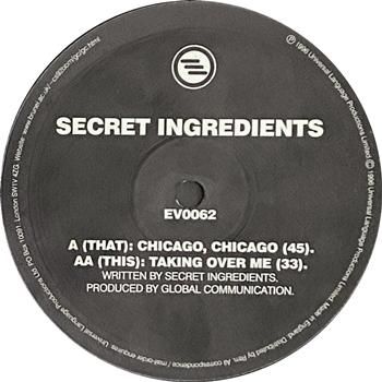 90年代アンビエント・テクノを代表する名盤「76:14」で知られるGLOBAL COMMUNICATION (MARK PRITCHARDとTOM MIDDLETONのデュオ・ユニット)の別名義・SECRET INGREDIENTSが、自身のレーベル「EVOLUTION」からリリースした1996年作。ROY AYERSが1983年に発表した「SILVER VIBRATIONS」に収録されている「CHICAGO CHICAGO」をサンプリングしたA面、初期の「CAJUAL RECORDS」を彷彿とさせるソウルフル且つじわじわとビルドアップする構成が魅力のB面と、上質なハウスが2トラック収録。(Jun Kitamura)